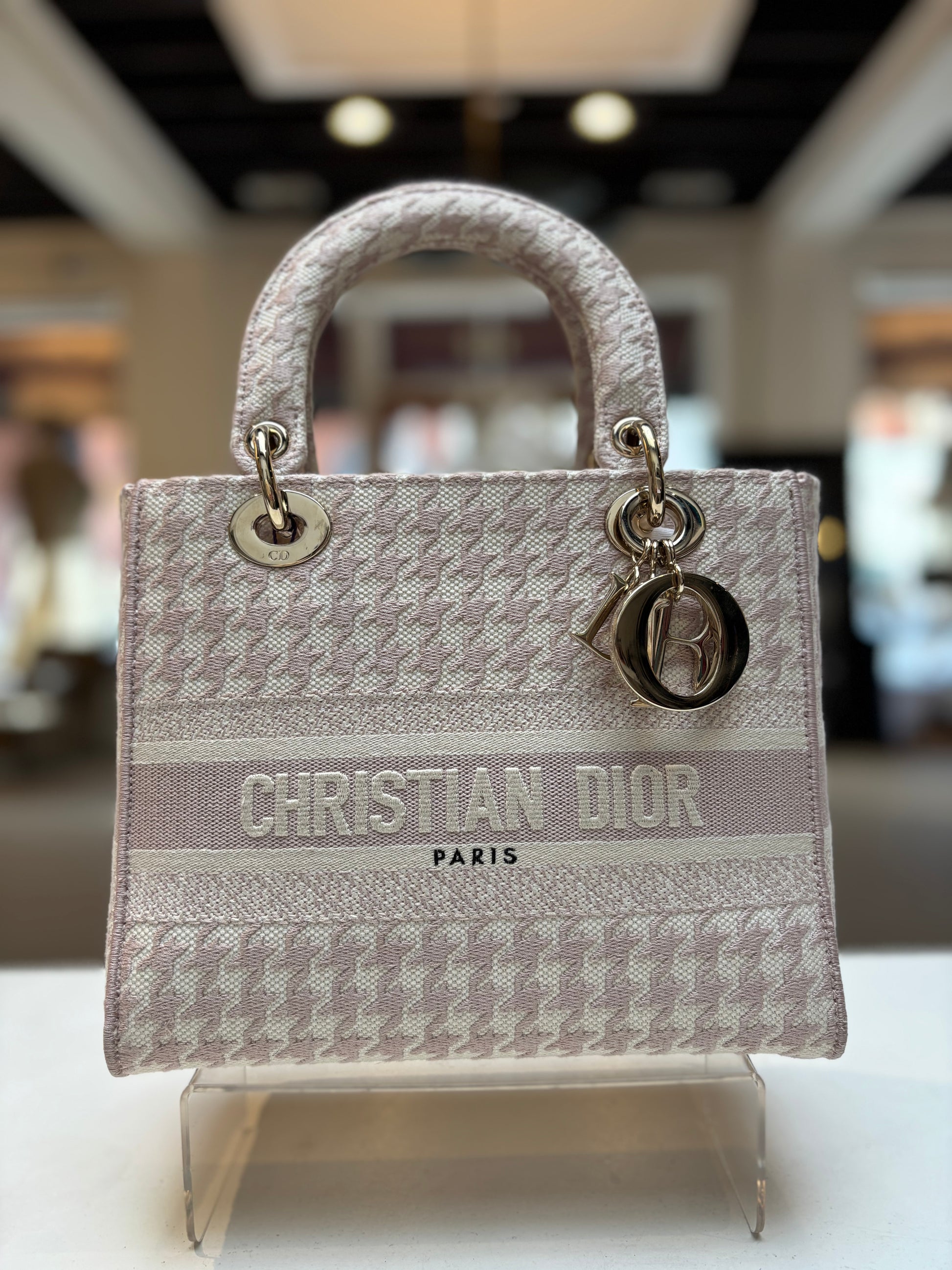 Perfect condition Dior D-Lite bag in a stunning powder pink color. Comes with dust bag and strap.
