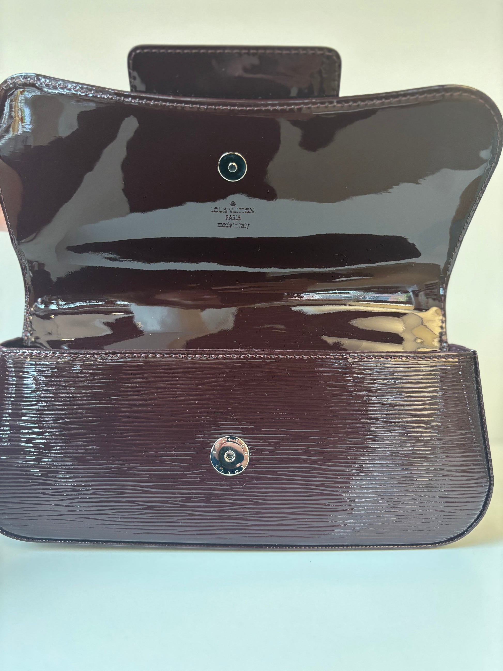 Stunning burgundy Louis Vuitton Sobe Vernis Clutch in excellent condition. Comes with dust bag.