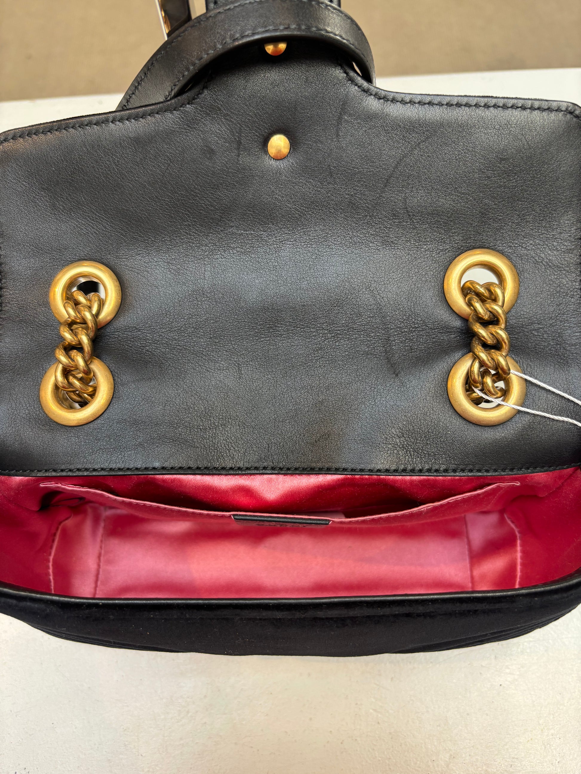 Perfect condition Gucci Velvet Marmont Flap bag. Interior has no signs of use. Arrives with dust bag.