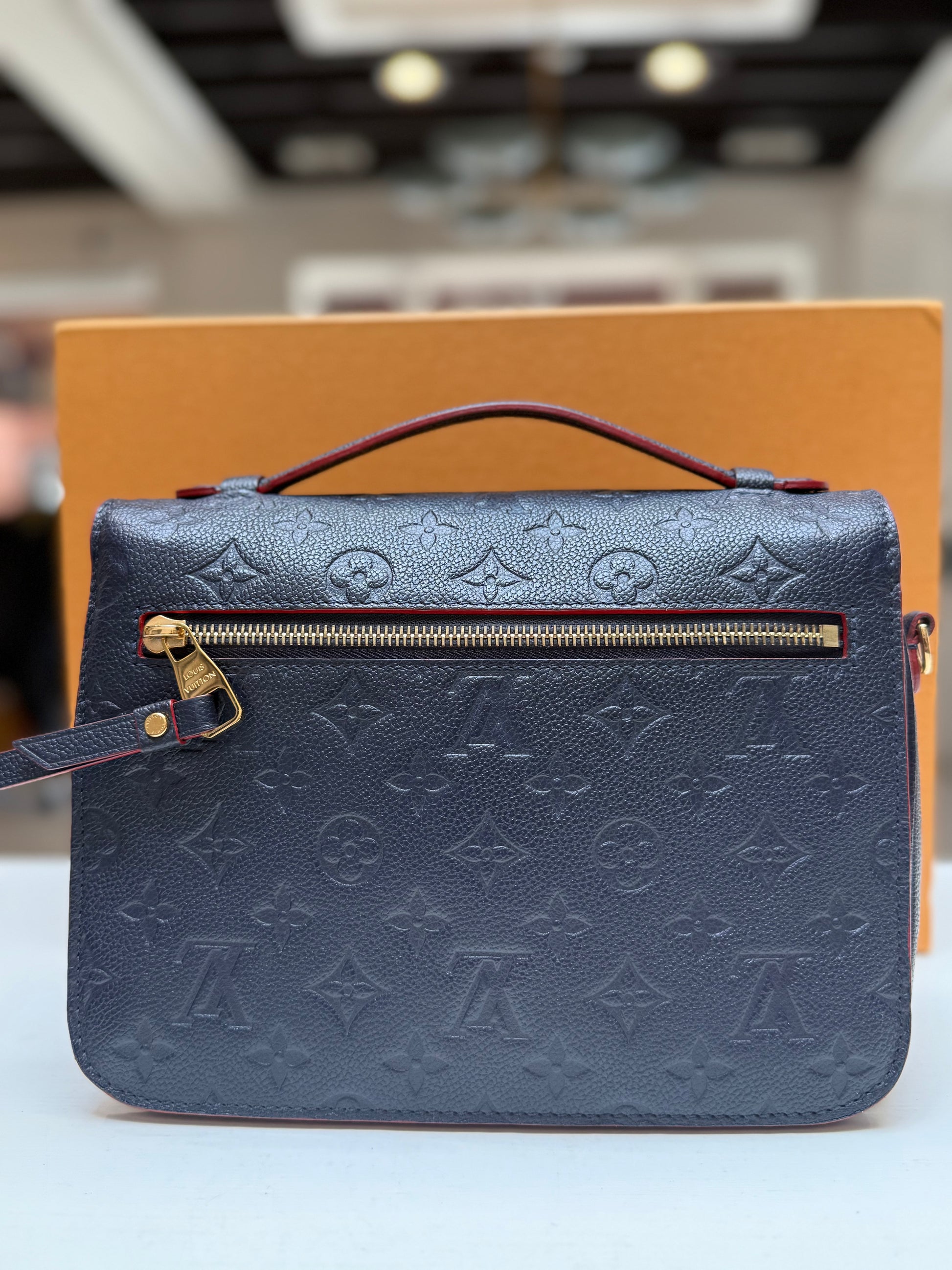 Navy embossed leather meets structured design and functional elegance in this timeless Louis Vuitton piece. Like new condition, comes with dust bag and certificate of authenticity.