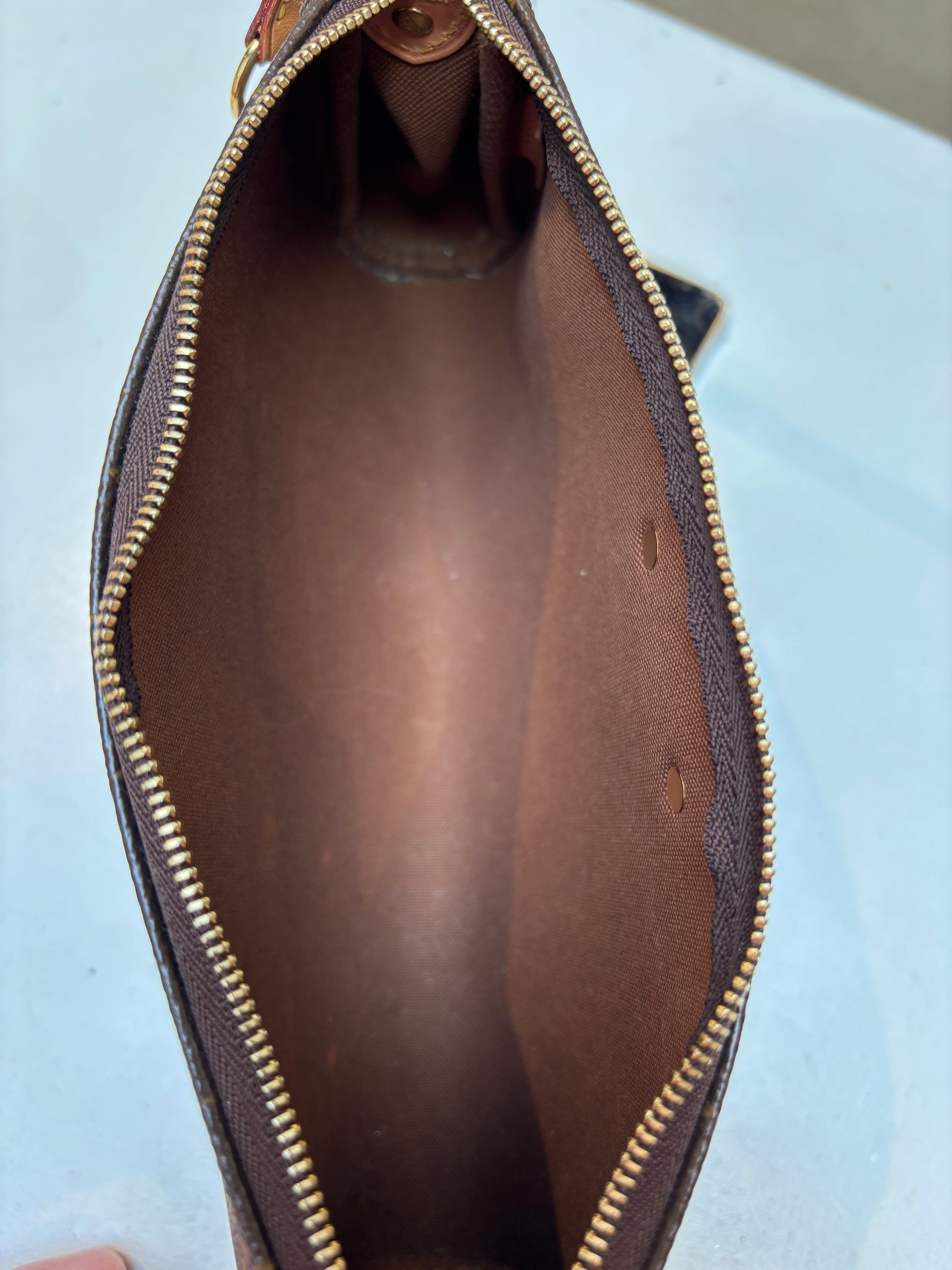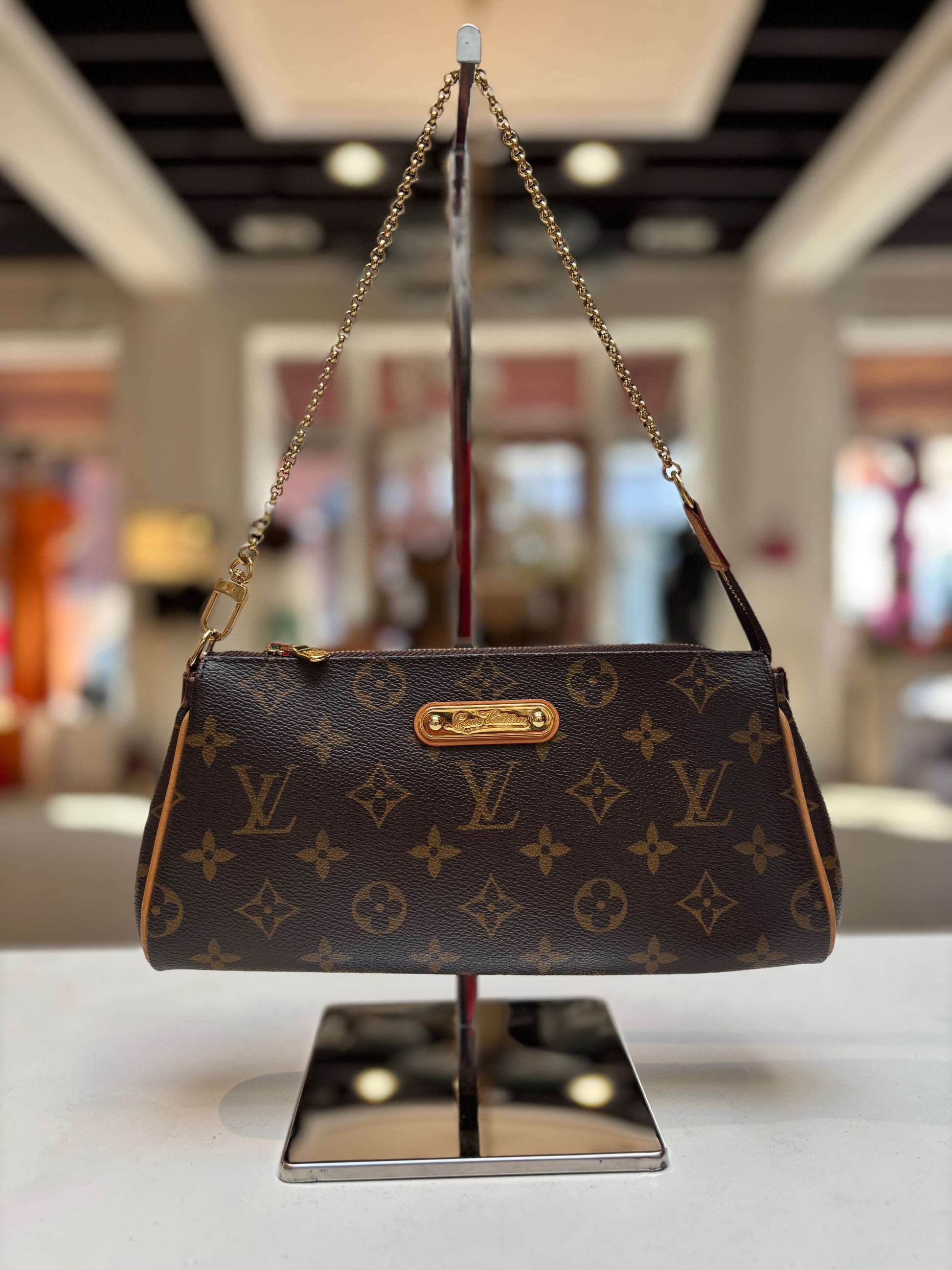 Pristine condition LV Eva Clutch. Arrives with dust bag and leather cross body strap.